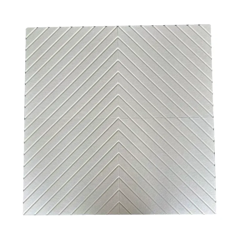 1. Ympäristöystävälliset ja turvalliset: Beiget V-uritetut PET-huopa-akustiset paneelit on valmistettu 50 % kierrätetystä polyesterikuidusta, ilman kemiallisia liimoja, ja ne täyttävät nollaformaldehydistandardit ja MSDS-sertifioinnin, mikä takaa mielenrauhan käytettäväksi kodeissa, sairaaloissa ja kouluissa, suojaa perheen terveyttä ja vähentää taakkaa planeetalla;